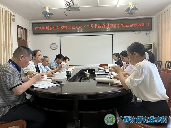 为持续强化理论武装,筑牢思想根基,10月14日下午,我校第五党支部在第一会议室召开全体党员大会,严格落实“第一议题”学习制度,并组织开展《习近平治国理政》第五卷专题学习。会议由党支部书记劳海燕主持。