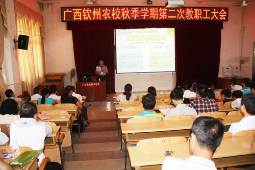 8月26日下午,我校在电化教室召开秋季学期第二次教职工大会,伍国樑校长就新生入学情况及相关问题进行通报。