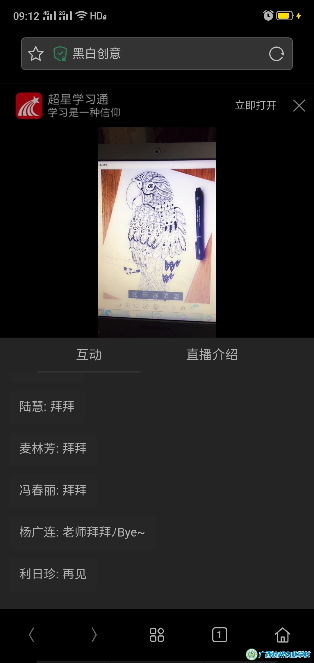 学前教育专业包月夏老师,利用网络平台在家讲授《黑白线描》。授课对象是学前185班,一共34名同学参与课堂。包老师通过生动形象的图片、浅显易懂的例子、在线直播简洁凝练的语言从易到难,启发引导学生,并综合运用线上竞答、答疑讨论、连麦回答等多种方式组织教学活动。她极具亲和力的授课风格,生动有趣的课堂活动,整个课堂气氛融洽,师生线上交流频繁,互动热烈,获得学生一致好评。