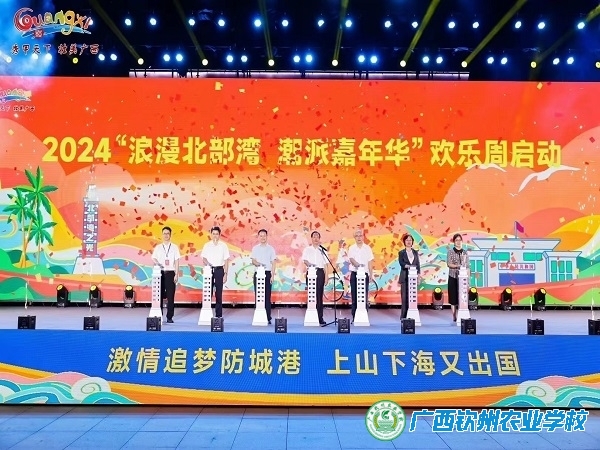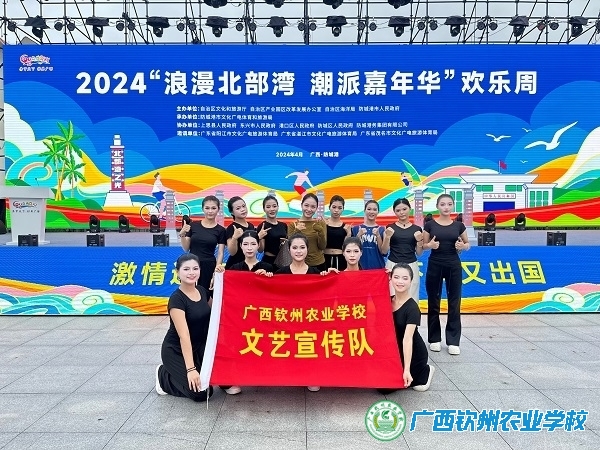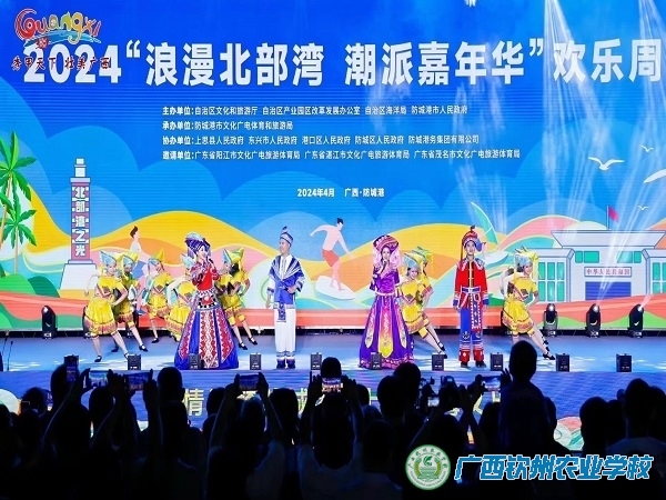4月26日晚,由广西壮族自治区文化和旅游厅、自治区产业园区改革发展办公室、自治区海洋局、防城港市人民政府共同举办的2024“浪漫北部湾 潮派嘉年华”欢乐周活动在防城港市北港故里激情开幕。应钦州市文化广电体育和旅游局的邀请,我校谭倩倩老师和12名学生(女)前往参与歌舞节目《山歌畅享运河城》的表演,歌舞描绘出了钦州人民团结奋进、美好和谐的幸福画卷。