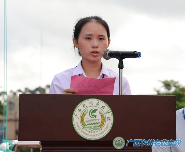 新生代表加工253班陈业胜在发言中表达了迎接挑战、磨练自我的决心,承诺将严格遵守纪律,认真完成训练任务。班主任代表韦孜娜在发言中寄语新生,希望同学们通过军训锤炼意志、强健体魄,提高思想觉悟,增强组织纪律性,为今后的学习生活奠定坚实基础。