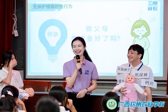 为加强学生干部队伍建设,提升其身心健康发展水平与综合素养,发挥其在学生中的积极引领作用,2025年9月17日下午3时,我校特邀广西南宁三醒成长教育咨询有限公司专业团队来校,在阶梯教室,为学生会、团委、护校队的学生干部举办了一场主题深刻、内容实用的《知“性”成长 从心出发——身心关怀健康教育讲座》。讲座由广西钦州农业学校心理咨询室主任梁琼今主持,广西南宁三醒成长教育咨询有限公司张媚老师主讲。
