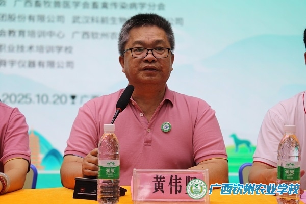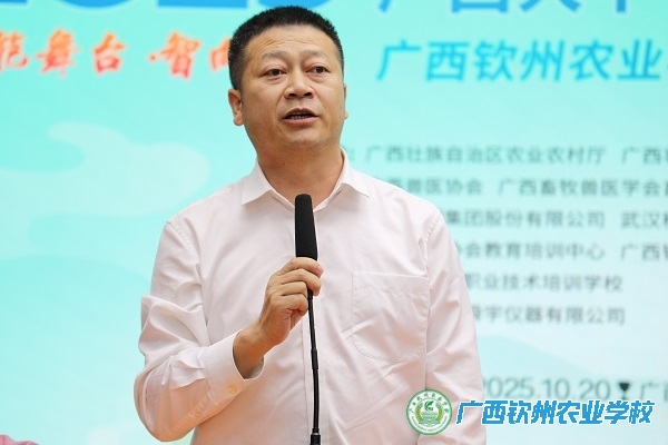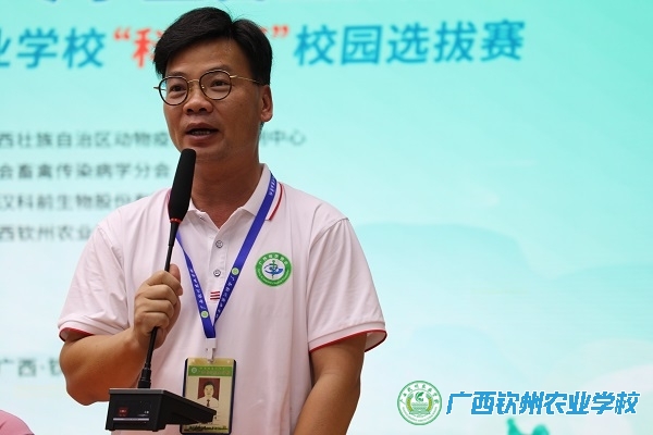 10月20日下午,选拔赛开幕式在第二实训楼一楼仿真实训室隆重举行。广西兽医协会会长黄伟坚、副秘书长甘海霞、常务理事潘杰,武汉科前生物股份有限公司大客户南区总监、高级兽医师李进国,学校党委委员、副校长李运光,专业教师及学生代表等近50人共同出席。