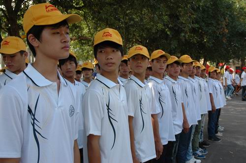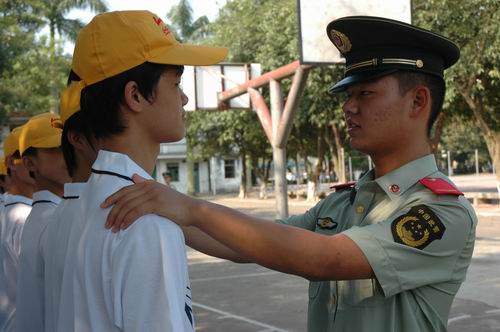 在学校田径运动场上,新生们正在骄阳下稍息、立正、站军姿。烈日炎炎,同学们汗流浃背,但仍然坚持训练下去。在他们心中有一个坚定的信念,那就是坚持,坚持,再坚持。