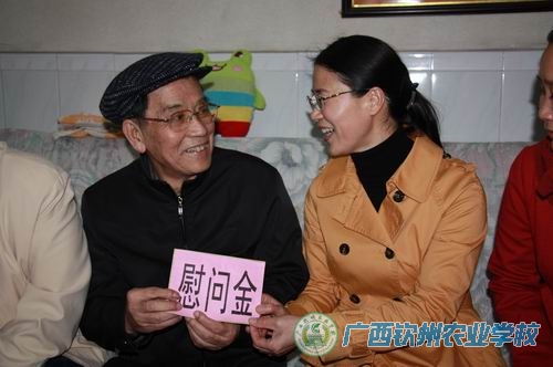 我校领导率工会、校办等相关部门负责人分三组进行慰问,分别慰问了12个对象。伍国樑校长率队慰问了住在校外的退休职工,在市第二人民医院,伍校长等慰问了住院的90岁老人陈惠普老师,伍校长向陈老师家属详细过问陈老师病情,与陈老师亲切交谈,祝陈老师早日康复。在陈焕楷老校长家,覃一静副校长等与陈老校长拉家常,嘘寒问暖,祝陈校长健康长寿。在困难职工吴秉钦家,覃效敏副校长和周家立副校长等,向吴秉钦送上慰问金。学校工人吴秉钦爱人去年因病长期住院,覃效敏等希望吴秉钦同志克服困难,关照好家人,渡过难关。