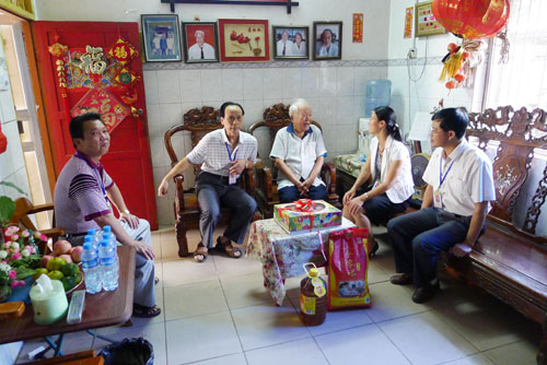 伍国樑校长和工会陆武昌主席慰问退休老教师