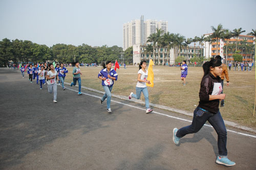 竞赛项目有男子1000米,女子800米,及接力赛。虽然天气较寒冷,但运动员们都斗志昂扬、奋勇争先,并全部坚持跑到终点,他们用坚定不移的信念展现了钦农学子不服输,积极向上的精神风貌。比赛中,各班级还组织了啦啦队员为运动员们呐喊加油、细心服务,充分体现了全体学生的竞争意识和团队精神。经过两天的激烈角逐,共产生30个团体奖,170个单项奖,取得了令人满意的成绩。